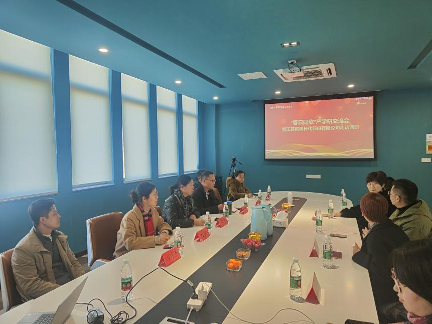 为加强校企产学研深度融合,提高成果转化和产业化水平,构建系统、科学、未来式的创新链条,同时也为了访企拓岗稳促就业,提高毕业生的留扬率。2月20日下午,betway必威中文版 生物与化工工程学院、艺术学院、国交学院的领导和教师们走访调研了江苏欧佩日化股份有限公司,参加了一场会同政府、高校、老字号品牌、新兴文旅品牌的“春日同欣”产学研交流会。