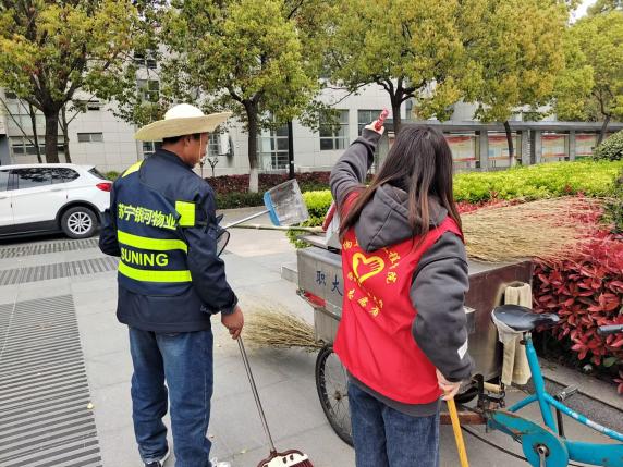 4月2日下午,生化学院的学生党员及入党积极分子志愿者们早早地穿上红马甲在生活区主干道等待活动的开始,他们兴高采烈地讨论着自己即将体验的工作。在欢声笑语和满怀期待中,志愿者们“兵分四路”,干劲十足地走向了食堂保洁、宿管、校园环卫工、门卫等岗位开展志愿服务。