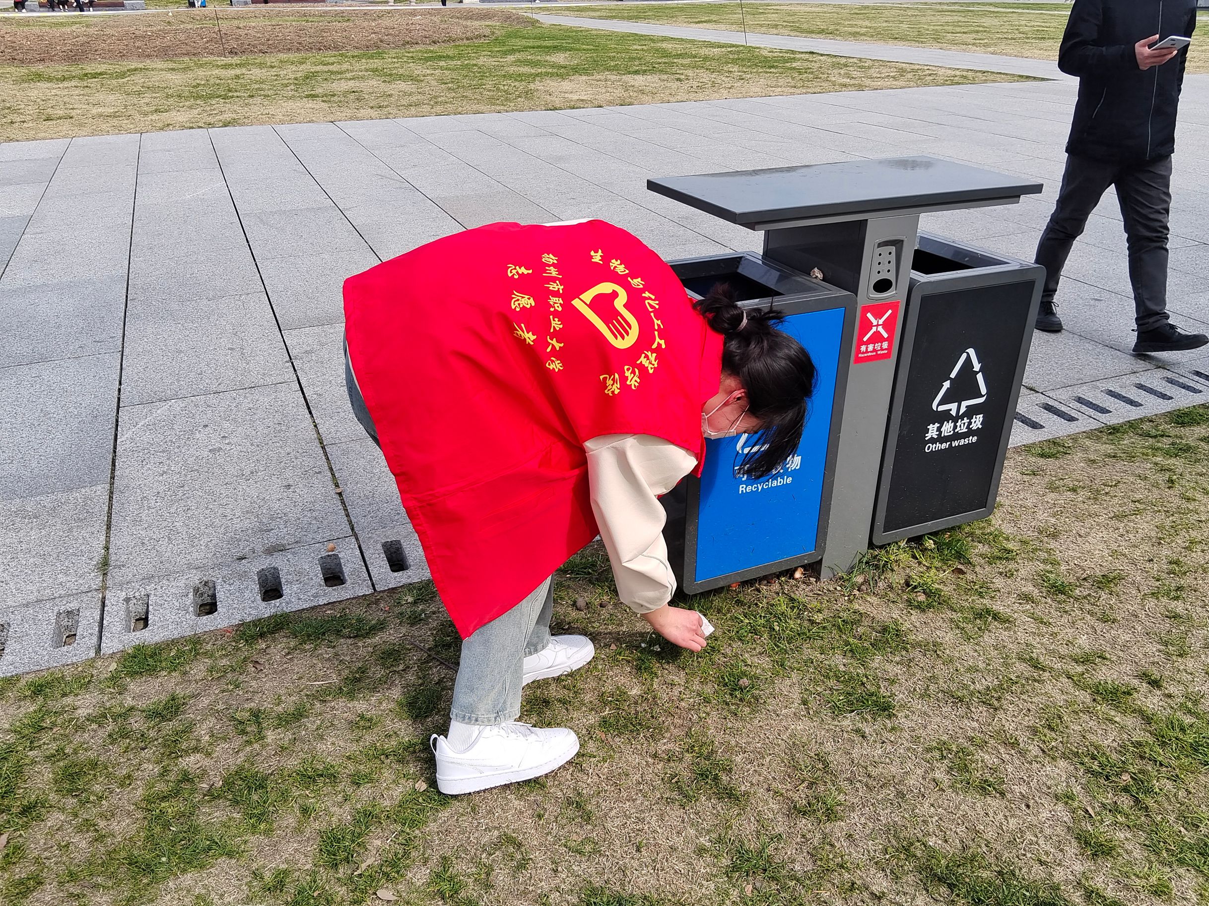 宣传运河文化,做运河生态的守护者。为进一步宣传运河魅力,做运河的守护者,保护大运河生态环境。生化学院入党积极分子们参观完运河博物馆之后来到了运河三湾风景区,开展了志愿宣讲和环保服务工作。他们在运河沿线向游客讲解运河文化和环保知识,在古运河畔清理捡拾散落的垃圾,对健身器材进行擦拭等,引导游客增强运河生态环境保护意识,养成绿色低碳的生产生活方式,争做运河生态的守护者、宣传者、保卫者。