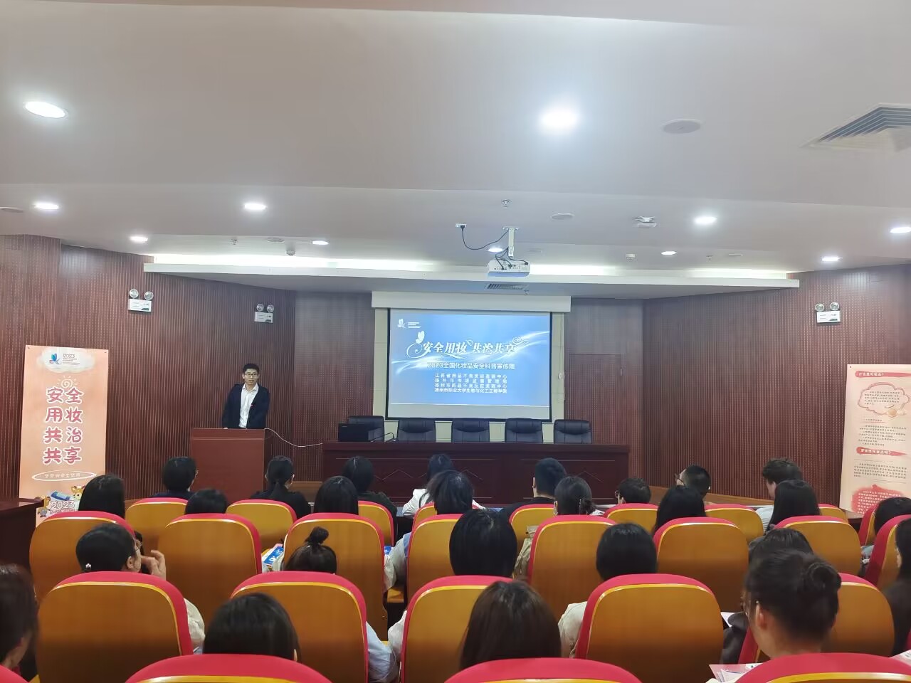 “同学们,牙膏是化妆品吗?”“美容针属于化妆品吗?”“防晒有必要吗?”5月25日下午,生物与化工工程学院依托化学、药品等专业优势,联合江苏省药品不良反应监测中心、扬州市药品不良反应监测中心共同举办了“5·25爱肤日--安全用妆,共治共享”科普宣传活动。图书馆一楼报告厅坐席爆满、人气爆棚,知识讲座、有奖答题、护肤大咖面对面等互动环节将宣讲活动推向了高潮。