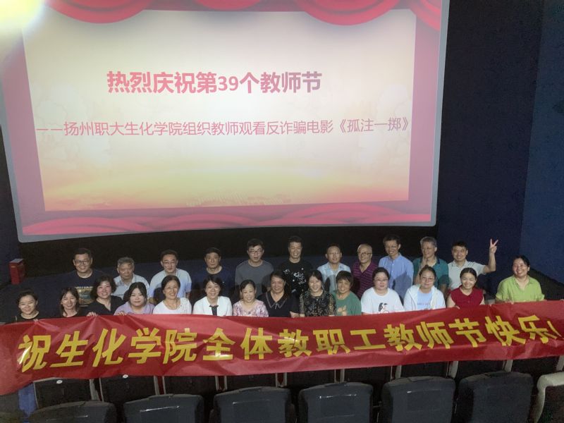 为庆祝第39个教师节,提高学院教师网络安全意识,坚决筑牢防诈思想防线,9月6日下午,生化工程学院寓教于乐,组织全体教职工观看电影《孤注一掷》,带领大家度过了一个不一样的教师节。