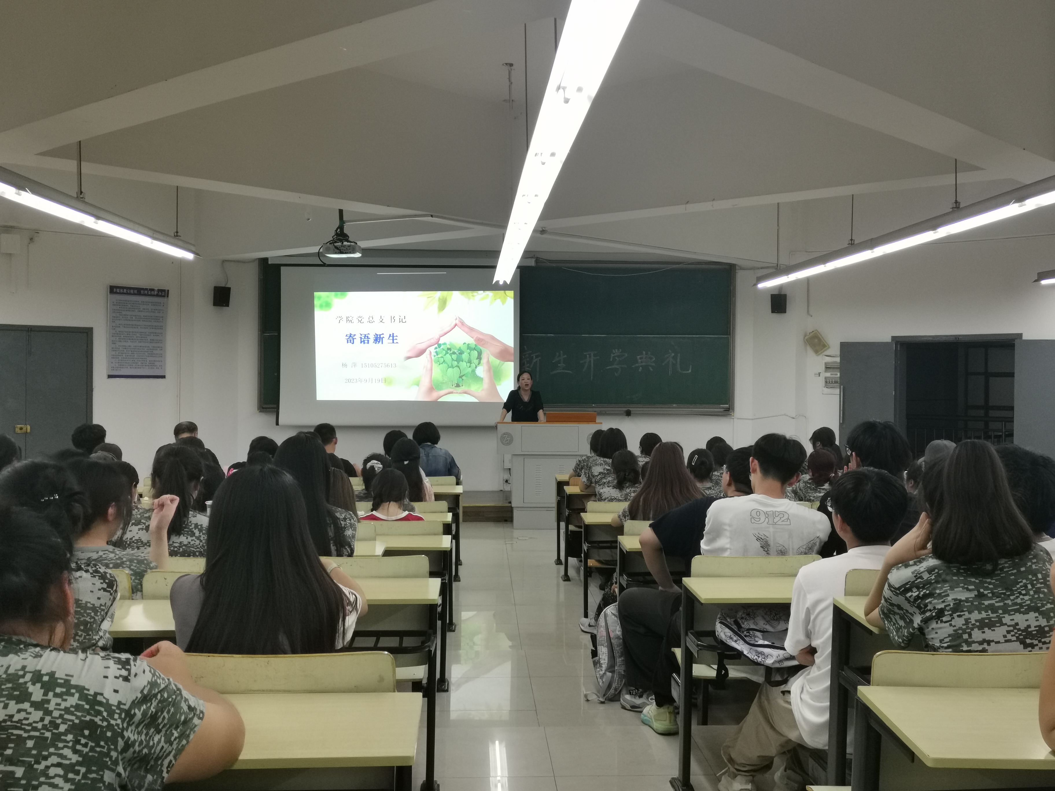 学院党总支书记杨萍重点介绍了学院23级生源概况及班主任配置情况,并对新生提出了殷切寄语,希望所有新生在即将开启人生的新征程中,要坚定理想信念,要立大志、明大德、成大才、担大任,不负时代,不负韶华。典礼最后,杨书记说道,她将陪伴着同学们的整个大学生活,大学三年里,学院的温暖将会一直伴随大家。朴素的言语,带给了新生最真挚的感动。