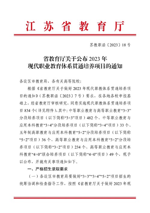 2023年5月22日,省教育厅发布了关于公布2023年现代职业教育体系贯通培养项目的通知。betway必威中文版 与盐城工学院的应用化工技术和能源化学专业成功入选高职院校全程培养的3+2本科招生培养项目名单。