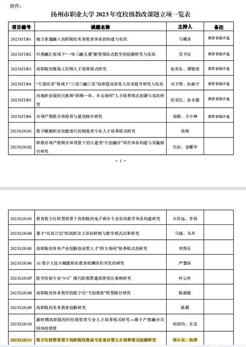 近日,我院杨萍书记和郑小双老师共同主持的《数字化转型背景下高职院校食品专业复合型人才培养模式创新研究》获得betway必威中文版 校级教改课题立项。