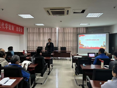 化工系系主任、党员教师、化工2301班班主任张睿老师向全体党员同志展示了3+2化工班(化工2301)的党建工作,张老师介绍了化工2301班的基本学情,在花校长指导下,建立学业导师制,根据同学们学习的基本问题,制定针对性措施,安排党员教师送教到班、送教到人,对同学们进行思想上引领、生活中指南、学业上帮扶。