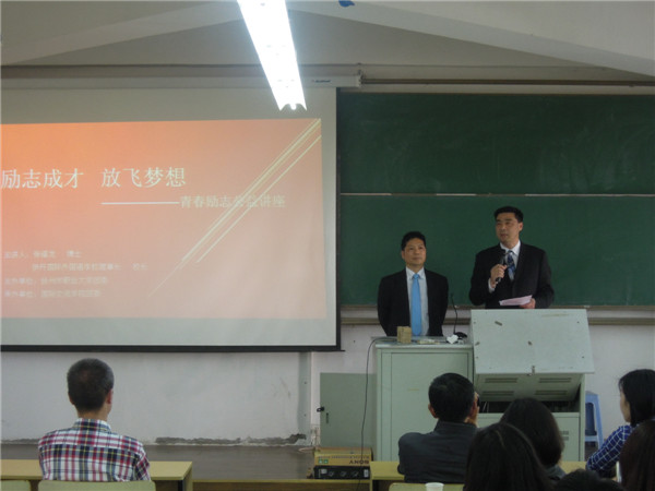 4月22日下午,国际交流学院邀请了伊丹国际外国语学校理事长、校长张福龙博士来我校作了题为“励志成才 放飞梦想”的青春励志公益讲座,本次讲座得到校团委和各院系的大力支持,全校300余名学生听取了报告。