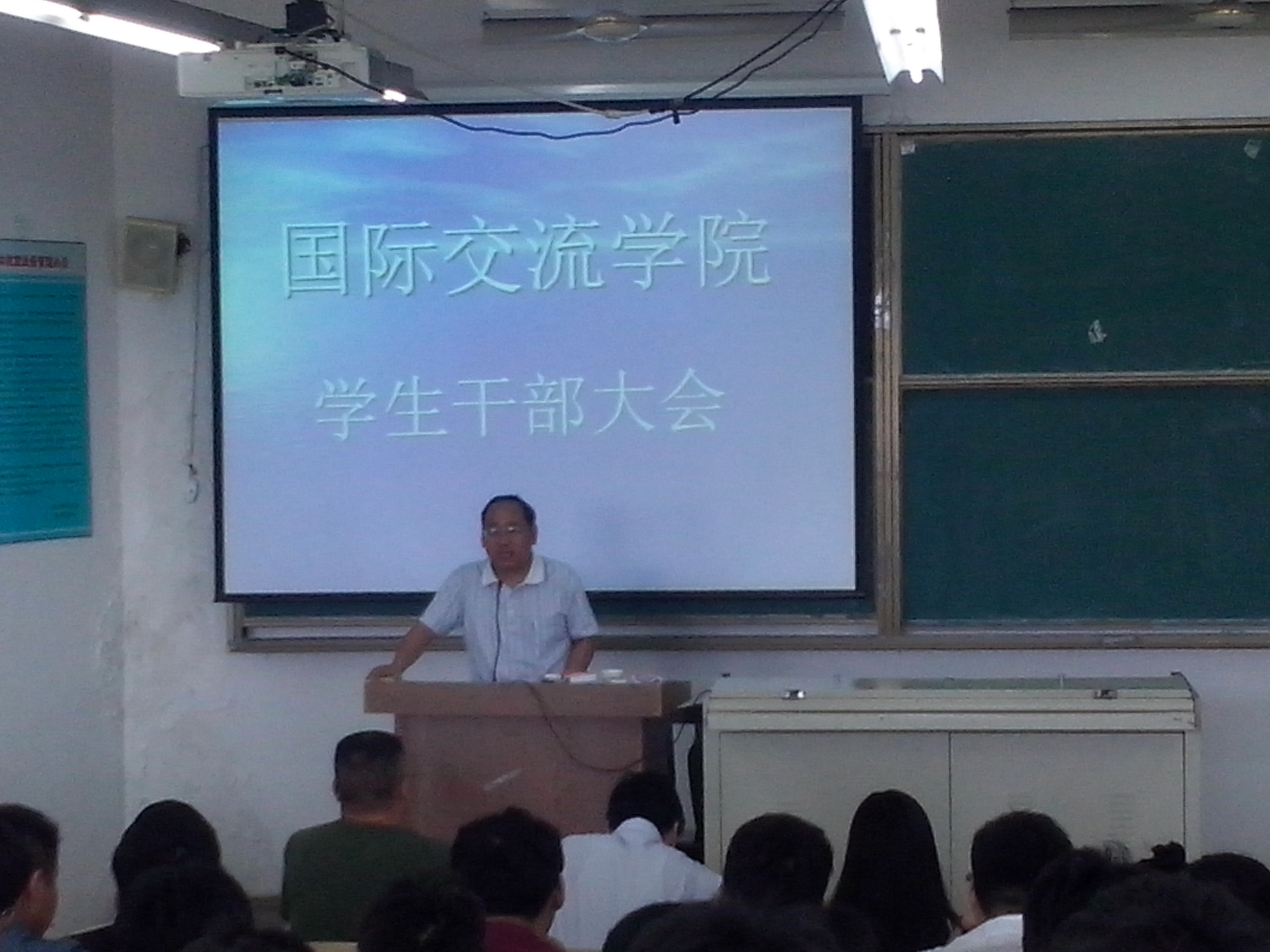 2015年5月21日中午,国际交流学院学生干部大会在多媒体厅成功召开。国际交流学院全体领导、老师,国际交流学院学生会全体成员以及各班班干部到场参加会议。