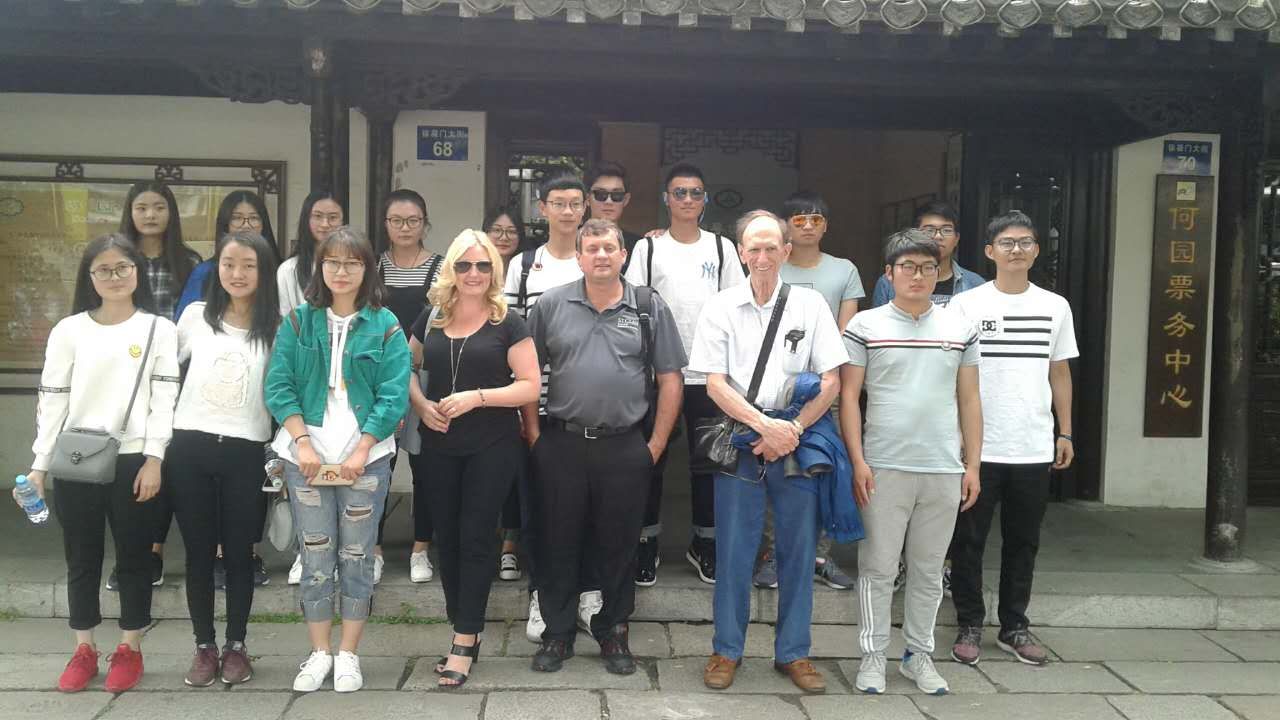 5月24日,国际交流学院3名加拿大圣克莱尔学院教授与15名学生在和园和古巷中开展学院经典活动“英语沙龙”。本次沙龙的主题是“我为外教做导游”,活动一改以往,将沙龙地点从学校搬到了和园和南河下古巷,让学生和外教们在交流互动之余,更感受到扬州2500年的古城文化。