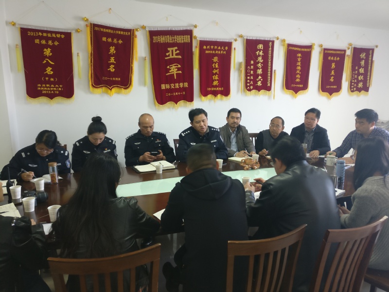 24日下午,扬州市出入境管理中心吕栋林支队长偕邗江分局、新盛派出所领导和出入境相关干警来国际交流学院指导留学生管理工作。国际交流学院全体工作人员参加了学习。