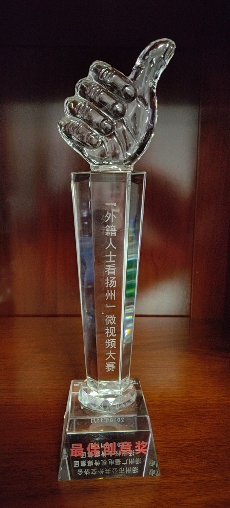“外籍人士看扬州”微视频大赛共有11件作品荣获一、二、三等奖。我校国际交流学院拍摄制作了不同角度的7件作品参与了本次微视频大赛,由印度尼西亚留学生左艾佳友情出演的《便捷扬州》、吉尔吉斯斯坦留学生杜爱莎出演的《跟着李白下扬州》获得了本次大赛的三等奖,马尔代夫留学生马红珊、米芾出演的《红珊访谈录》、老挝留学生孔明月、尹成宇、李之幸、谢亚兰出演的《月亮代表我的心》、老挝留学生李小龙、李开心等出演的《扬州慢生活》及意大利外教Giovanni Carini(中文名李元瀚)友情自编自拍自导自演的《李元瀚博士扬州印象》等4部作品荣获大赛的最佳创意奖,为表彰我校师生在本次比赛中的积极参与及优异成绩,大赛组委会特授予扬州职业大学最佳组织奖。