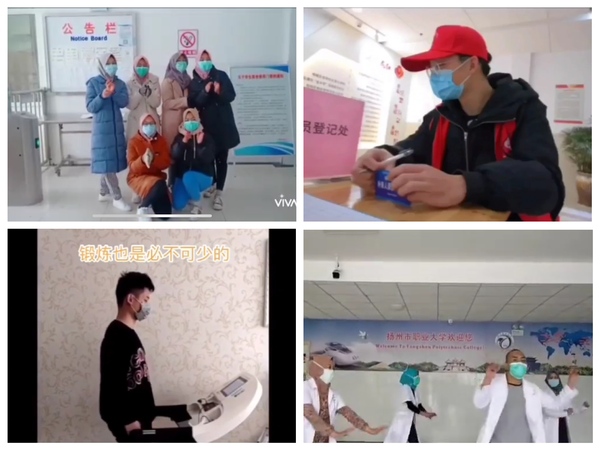 大家在视频中分享了防疫消毒的科普知识,交流了线上课程的学习心得,展示了参加社区疫情防控志愿服务的青春风采。留在学校过寒假的留学生们,拍摄的每一条视频都能让人感受到积极向上的精神风貌和快乐情绪,他们每天测量体温,坚持学习,把宿舍打扫得干干净净,生活安排得井井有条。