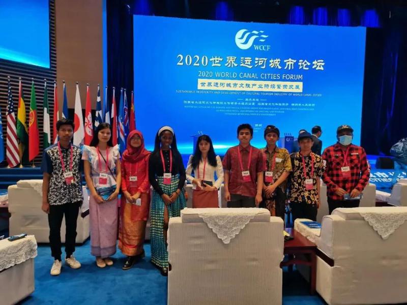 9月28日,应世界运河历史文化城市合作组织(WCCO)的邀请,印度尼西亚、马尔代夫、老挝、赤道几内亚、柬埔寨五个国家在betway必威中文版 就读的九名留学生代表出席了2020世界运河城市论坛。