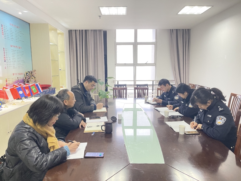 随后,双方就外国留学生证件办理、开展出入境法律法规教育、外国留学生相关管理制度、留学生信息统计、签证手续办理和留学生日常管理以及留学生假期疫情防控等几方面进行了深入交流。