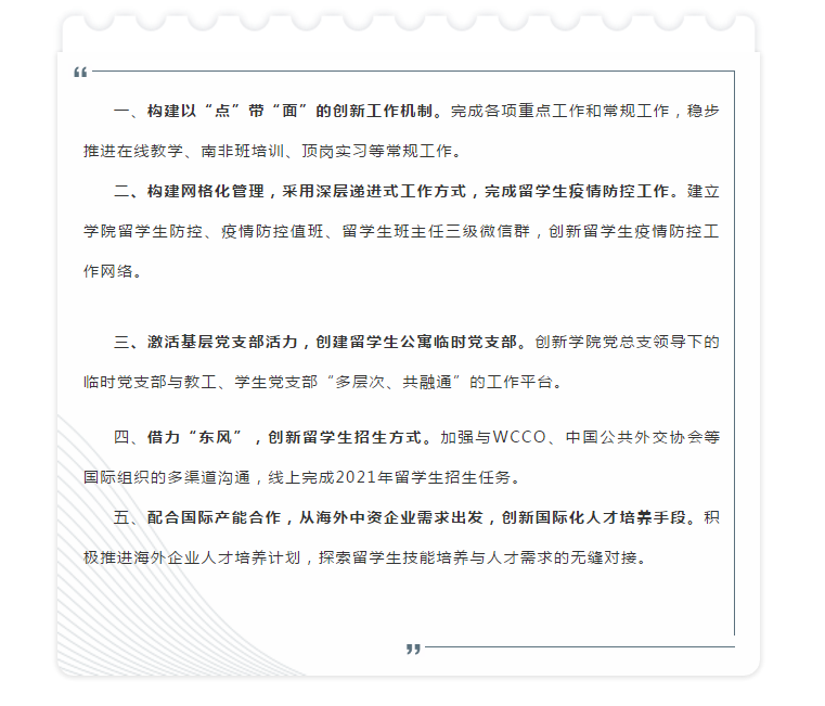 凝心聚力,开拓创新,促进国际合作交流工作质量提升;围绕目标,团结协作,努力提高学校国际影响力。