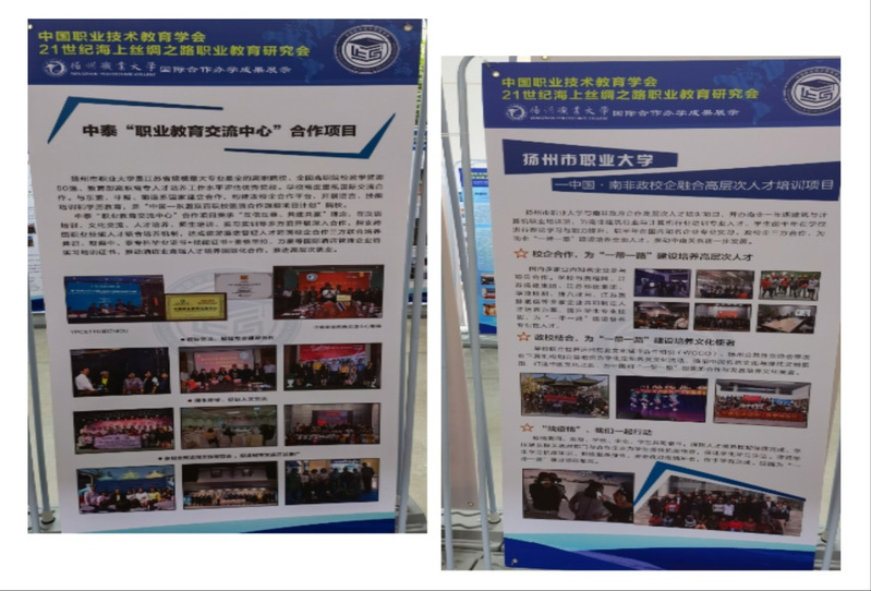 在大会期间举办的“国际合作办学成果展”中,我校以图文展板的形式向中外嘉宾展示了我校与泰国科教集团共建的中泰“职业教育交流中心”中国-东盟双百旗舰合作项目和与南非政校企融合高层次人才培训项目取得的成果和特色亮点,进一步展现了我校国际合作办学项目的特色效应,扩大了我校的社会知名度。