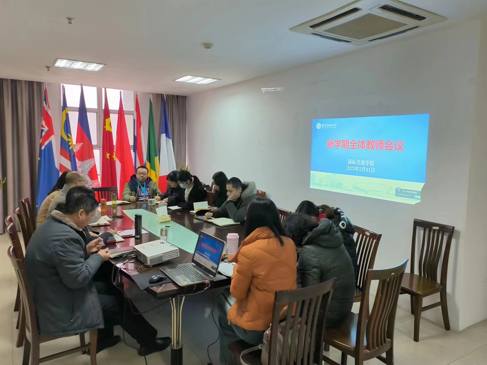 2月11日上午,国际交流学院在图书馆楼801会议室召开了新学期全体教师会议。