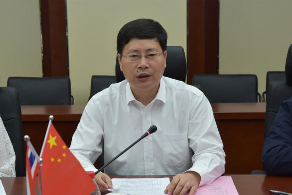 揭牌仪式结束后,双方代表共同出席了首届泰国科教集团学生研学团的开班典礼。开班典礼由副校长刘宏主持,党委副书记、校长潘锦全对泰国研学团的到来表示热烈的欢迎,他向泰国的同学们介绍了我校近年来国际合作办学和留学生招生等方面的情况。