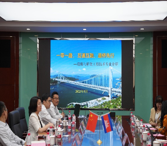 活动中,相关学院专业负责人受邀为柬埔寨公共工程与运输学院(TSIPWT)的领导老师与学生们开展了专业培训。土木工程学院路桥技术系主任尹继明老师开设了题为“一带一路、互通互融、道桥先行”的主题培训讲座,分析了“一带一路”倡议给道路桥梁专业带来的机遇,介绍了“工学单元对接公路建设过程”的专业建设思路,分享了“学业导师、全程引领,精准培养”人才培养模式,阐述了“一条主线、二个对接、三个模块”的课程体系的构建过程,介绍了专业师资队伍建设思路及教师专业化培养途径,展望了道路与桥梁工程技术专业国际化发展与合作前景。