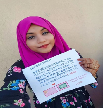 Mi Fu (left)2017 Maldivian student, majored in information technology , project manager of China-Maldives Cultural Friendship Association