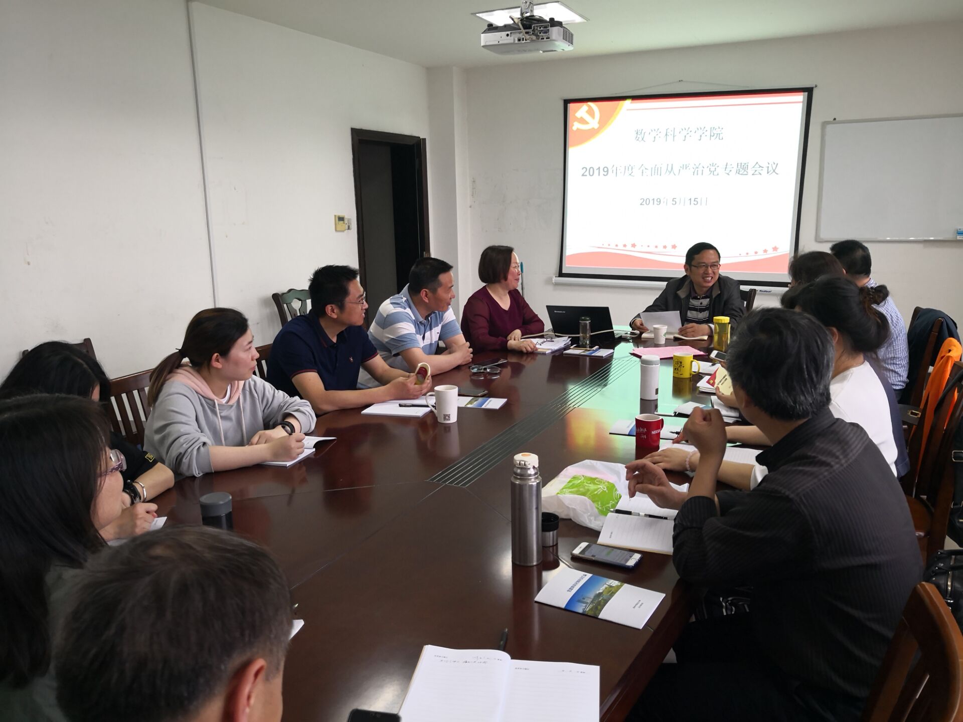 5月15日下午,数学科学学院召开2019年度全面从严治党专题会议。纪委书记黄华明出席并讲话,学院全体教师、学生党员参加会议。黄华明要求当前和今后的学院工作,要围绕中心、注重细节;扩大影响、加强交流;群策群力、提高认识。