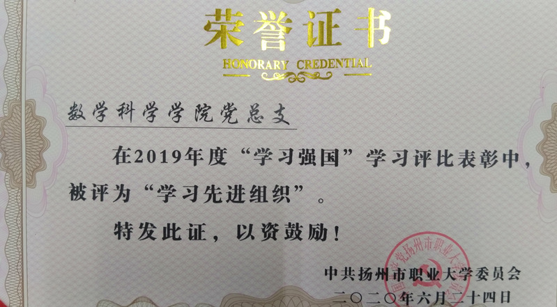 2019年度“学习强国”学习评比学习先进组织奖
