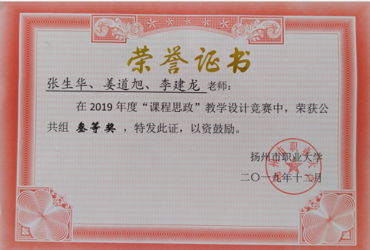 2019年度“课程思政”教学设计竞赛公共组三等奖(张生华、姜道旭、李建龙)