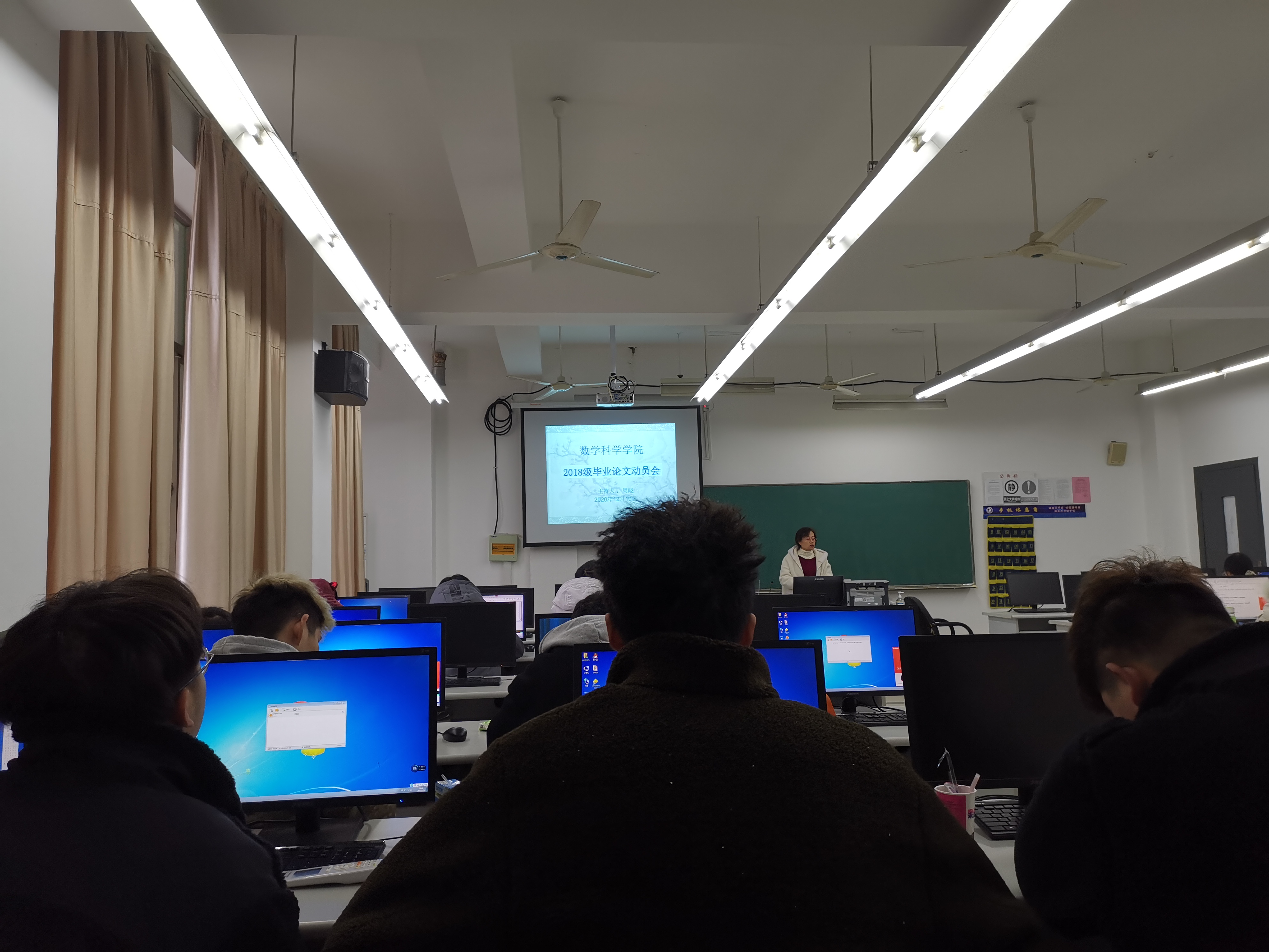 2020年12月10日上午,我院在统计实验实训室召开2018级学生毕业论文动员大会,会议由周晓副院长主持,统计1801班全体同学参加了此次会议。