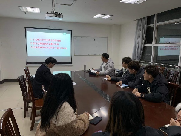 文传军老师从“重要时刻、重大关头的历史决议,百年奋斗的四个历史时期,百年奋斗的历史意义,百年奋斗的历史经验”四个方面,带领大家系统学习了习近平总书记重要讲话精神和全会精神,分享了学习体会。文传军老师通过现场互动的方式,与同学们分享自己的入党经历,共同探讨“什么是入党积极分子”,鼓励同学们要加强对全会精神的理解与感悟,切实做到学思践悟,在实现第二个百年奋斗目标新的赶考之路上,不负时代担当,全力成长为担负民族复兴大任的时代新人,做合格的社会主义事业接班人。
