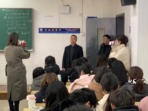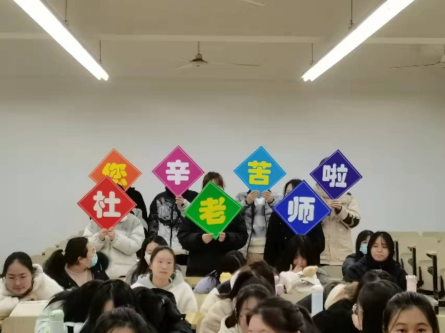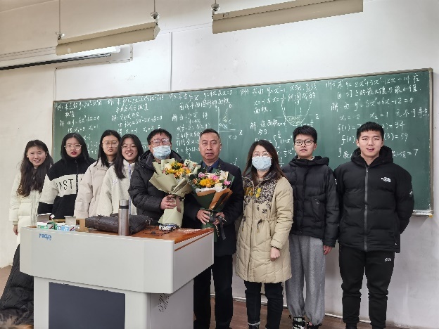 1985年入职我校的杜军民老师,在一线教学岗位上辛勤耕耘了三十余年,一支粉笔两袖风华,滴滴汗水桃李芬芳。活动现场,第一届学生代表陆汉俊向杜老师献花,学生们在课堂上向杜老师表达了声声的祝福,祝愿杜老师退休后的生活健康平安,开心快乐。副院长周晓代表学院,向杜老师在一线教学岗位上多年的无私奉献表示诚挚的感谢。
