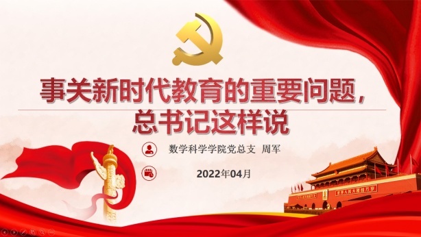 为深入学习贯彻习近平新时代中国特色社会主义思想,4月13日下午,数学科学学院党总支组织学习《习近平总书记教育重要论述讲义》,学习过程由党总支书记周军领学,学院全体教职工线上参会。