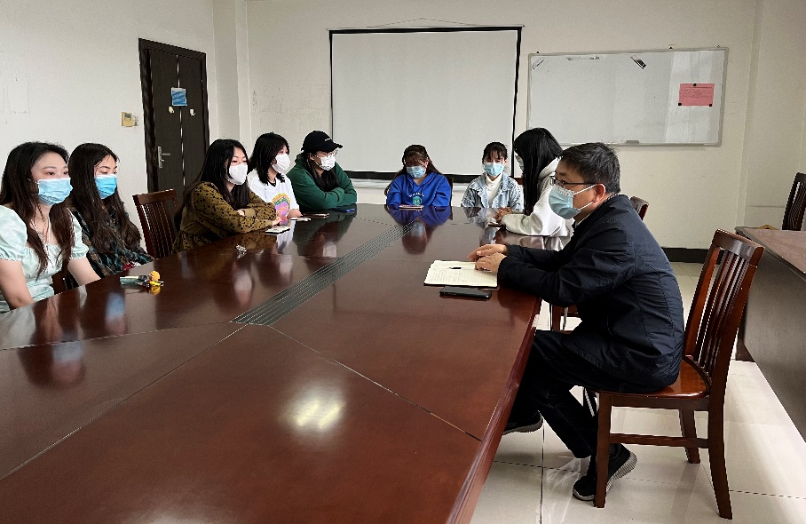 为了更好地了解疫情防控期间学生心理状态,倾听学生学习、生活的实际需求,保障学生生命安全和校园稳定,4月20日下午,数学科学学院在学院会议室718召开统计2001班学生座谈会。本次座谈会由党总支书记周军主持。
