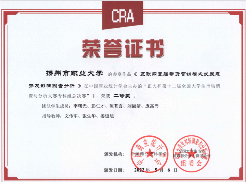 近日,由中国商业统计学会主办,河南经贸职业学院承办的“正大杯”第十二届全国大学生市场调查与分析大赛落下帷幕。在我院文传军等3位老师的精心指导下,李曙光、陈茗言等5名学生团队在参与决赛的162支队伍中脱颖而出,荣获二等奖。