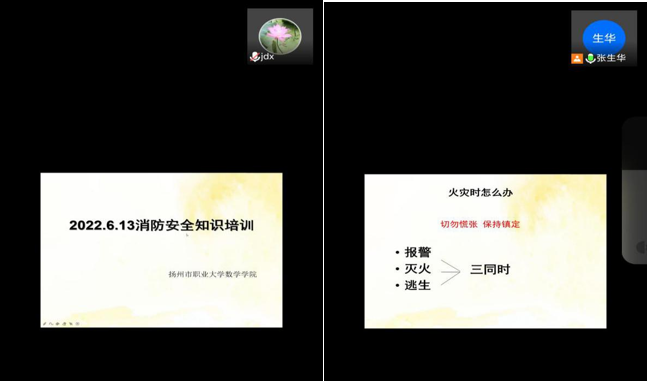 根据学校相关工作要求,为进一步增强我院师生的消防安全意识,保障学院实验实训室安全有效运转,2022年6月13日下午,数学科学学院通过腾讯会议的方式开展了实验室消防安全知识培训活动,本次培训会由实验室主任张生华老师主持,统计2001班全体学生及部分专业课教师线上参会。