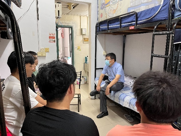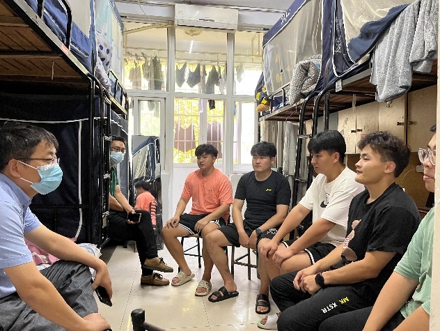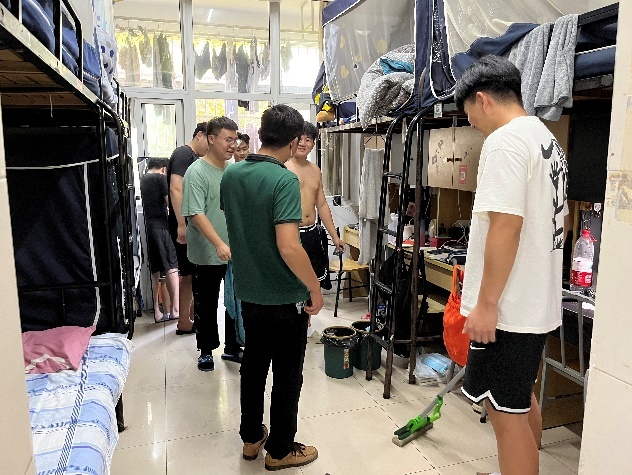 李建龙主任贴心询问了每一位同学的生活近况,对各个宿舍的卫生和安全隐患进行了排查,同时提醒学生根据相关疫情防控要求,做好宿舍消毒消杀、通风工作,规范内务卫生,共同营造安全有序、干净整洁的宿舍生活环境。