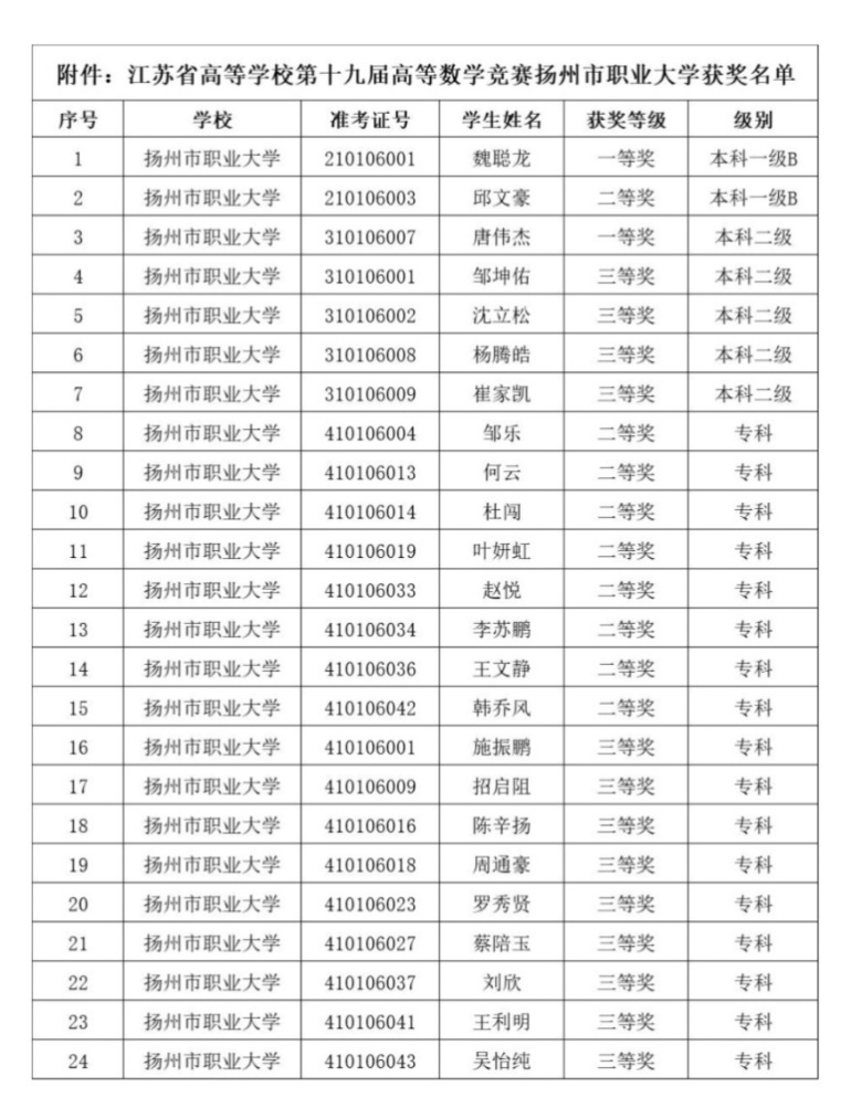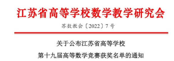 江苏省高等数学竞赛是我省高校数学学科中层次最高、参与院校最多、影响最大的大学生学科竞赛之一。为了激励学生学习数学的兴趣,提升我校人才培养质量,促进课程建设,助力数学及素质型人才的成长,我校历来高度重视这一赛事。本次竞赛由于疫情一再推迟,在校领导、教务处的指导和大力支持下,数学科学学院克服困难带领学生备赛参赛,再次取得了佳绩。