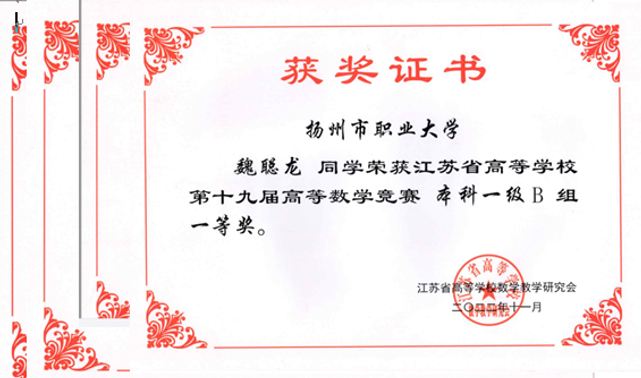 我校学子在第十九届江苏省高等数学竞赛中再获佳绩
