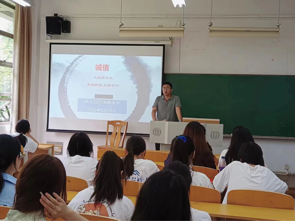 为全面落实党的二十大提出的“完善覆盖全学段学生资助体系”要求,增强学生诚信意识、风险意识和感恩意识,引导学生树立正确的消费观和价值观。529日下午,数学科学学院组织开展了“至诚则成,立信于行”主题教育活动,此次活动由学院学工办主任李建龙老师主持,学院全体非毕业班级学生参加。
