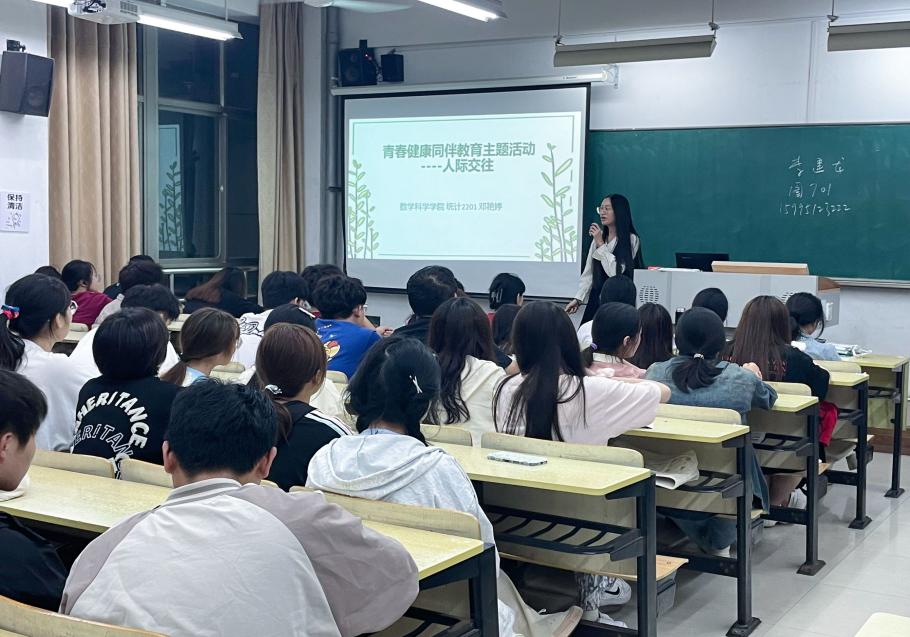 为响应《“健康中国2030”规划纲要》有关要求,落实《关于印发中国计划生育协会青春健康工作第三个五年规划(2020-—2024年)的通知》(国计生协〔2020〕17号)精神,着力提升大学生健康水平,加强大学生的健康观念和自我保护意识,帮助大学生度过健康、自信和出彩的青春年华,在9月26日晚,数学科学学院开展了“守护健康,青春同行”的主题活动。