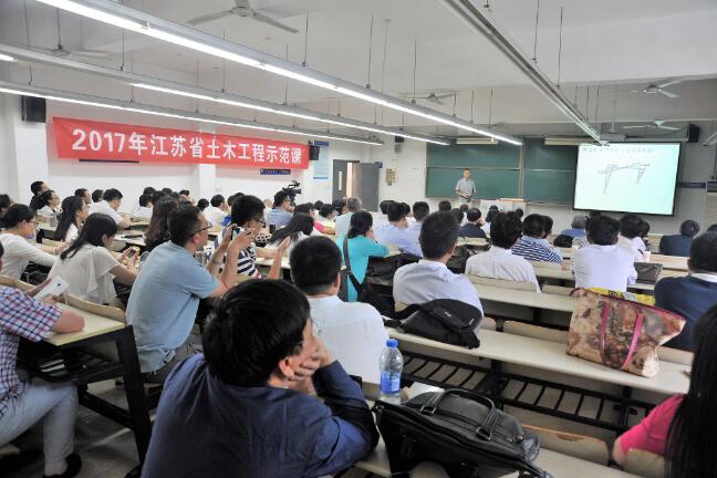 5月27号,青年教师讲课比赛吸引来自东南大学、河海大学、南京理工大学、中国矿业大学、南京航空航天大学等高校的85名青年教师参加角逐,参赛人数创历史新高,参赛选手准备充分,竞争激烈,最后决出特等奖5名,一等奖11名,二等奖19名。赛后,举办江苏省土木工程示范课,来自于东南大学单建教授和河海大学的沈扬教授献上两节精彩的公开课,征服在场所有的老师和学生。