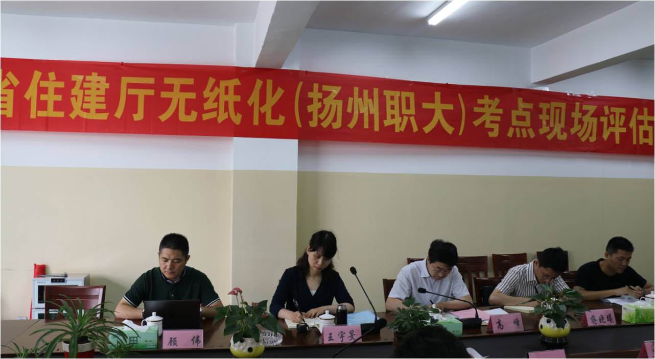 江苏省住建厅人教处、注册与考试中心领导和专家一行5人到我校召开扬州市无纸化考核考点的验收现场会。验收组通过听取汇报、查阅资料和现场查看,对我校无纸化考核点建设工作给予了高度评价。