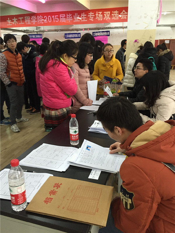 在经济发展新常态下,尽管建筑业进入新的调整期,但建筑企业还是对土木学院毕业生抛来真诚的橄榄枝,除了实习条件普遍包食宿、给薪水外,少数企业还对忠诚度高的新员工给予住房、医疗上的便利政策;江建集团、伟业市政安装等求贤量大的企业,直接于第二天与学生面谈面试。