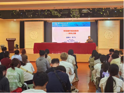 随后,学院实训中心主任许飞老师为新生带来学历提升教育讲座,帮助新生树立理想信念。通过此次讲座,同学们了解到学历的重要性以及提升学历的方法,明确当前专升本和就业的现状,为将来的专升本及就业打下基础。