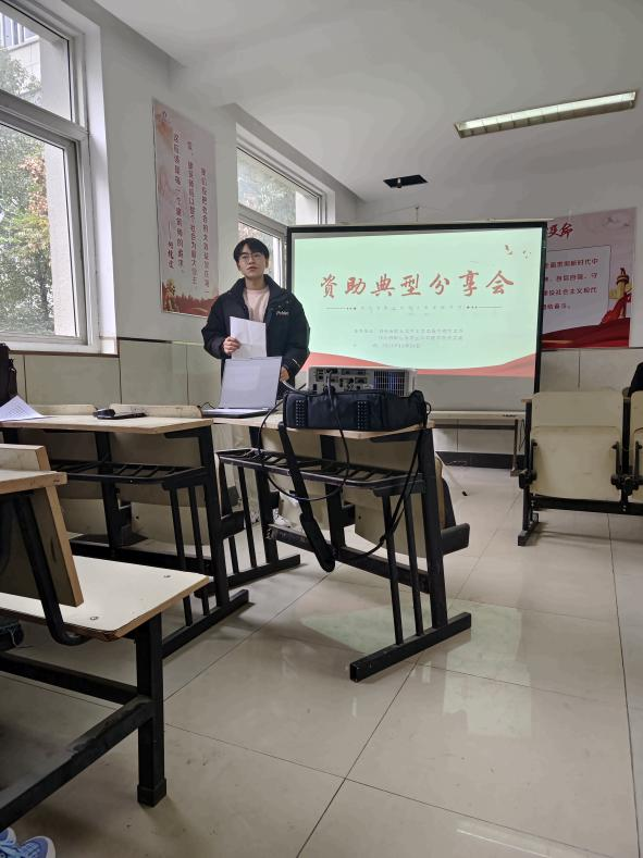 第二位交流的是现团委学生会副主席、2023年国家励志奖学金获得者杨茂梁同学。他表示,国家助学金不仅在物质上给了很大帮助,更是在精神上给予他莫大的支持。滴水之恩当涌泉相报,应当珍惜这来之不易的国家助学金,以自己最大的努力回报党和国家对我们的关怀。