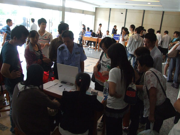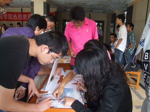 8月24日,虽然天空小雨濛濛,但校园里却热火朝天。2011级对口招生新生349名同学报名现场人声鼎沸,一位位家长带着小孩露着灿烂的笑容走进班主任报名处,有序的接待、简便的手续、周全的服务,让同学们和家长十分满意。据统计,当天报到率达99℅,也应证了学校30年来的办学特色和扬州经济发展的巨大潜能。