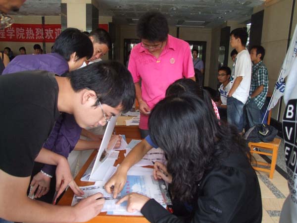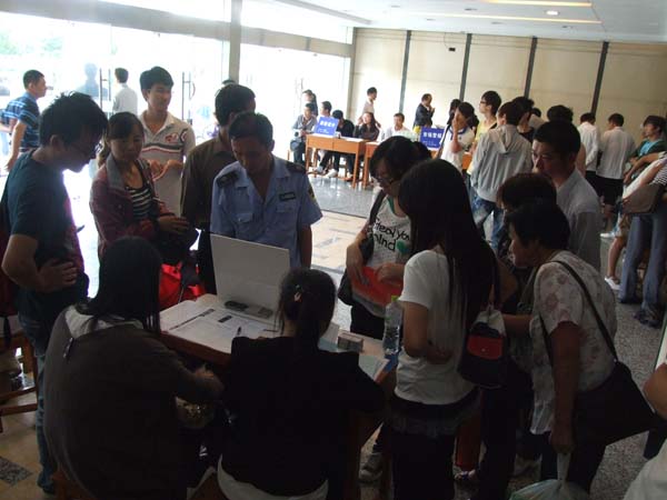 8月24日,虽然天空小雨濛濛,但校园里却热火朝天。2011级对口招生新生349名同学报名现场人声鼎沸,一位位家长带着小孩露着灿烂的笑容走进班主任报名处,有序的接待、简便的手续、周全的服务,让同学们和家长十分满意。据统计,当天报到率达99℅,也验证了学校30年来的办学特色和扬州经济发展的巨大潜能。