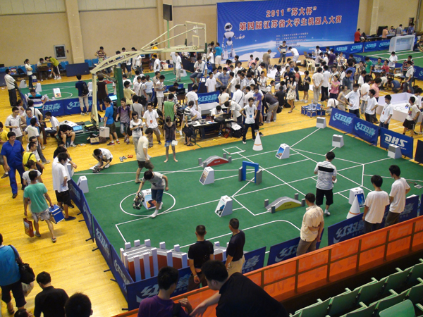 7月20—22日,“2011年江苏省第四届机器人大赛”在苏州大学体育馆隆重举行。我校汽车与电气工程系共派出6支比赛队伍,参加三个项目的比赛,分别为机器人吸尘比赛、机器人灭火比赛和机器人游中国比赛。此次比赛我校代表队收获了优异的战绩。其中,在机器人吸尘比赛中获得冠军;机器人游比赛获得一等奖和二等奖;机器人灭火比赛获得三等奖。涵盖了从冠军杯到优胜奖的全部奖项,这一成绩,不仅在高职高专类院校中首屈一指,在包括本科高校在内的所有参赛院校中也是相当优异的战绩。