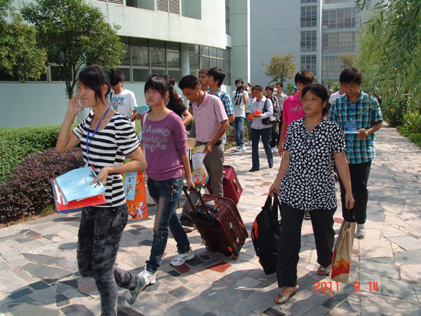 学校以“热情周到、安全有序”为宗旨,关注新生的每一个细节,发放家校卡,出动巡逻车,帮助新生搬送物品,开通 “绿色通道”等,让每一个新生顺利入学。报到现场,18个院(系)迎新工作井然有序,学校领导、院(系)和相关职能部门主要负责人到亲莅现场指导迎新工作,为新生及新生家长提供优质服务。当天,近千名志愿者参与了接待工作,他们在汽车站、火车站帮助新生提拿行李、送新生入住公寓、熟悉学校环境等。为方便新生入学报到,学校专门安排了5辆车,从早晨六点开始,分赴火车站、汽车西站、汽车东站接送新生及其家长,将5000多名新生和近万名学生家长有序地接送到学校和车站。