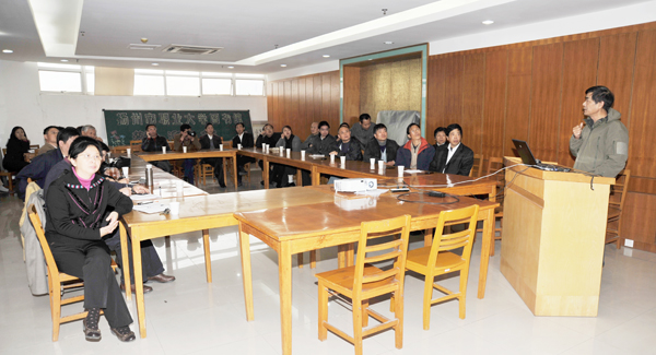 讲座由组织处处长、影协副会长桑光沄同志主持,扬州晚报·扬州e家摄影版版主、影协秘书长刘放鸣老师主讲,学校纪委书记、教职工摄影协会会长刘建伟,宣传处处长、影协副会长李美仪,学校工会主席王桂山,图书馆馆长李绮及部分影协会员和摄影爱好者近40人参加活动。刘放鸣老师的“摄影知识浅谈”讲座,为大家讲述了照相机的发展历史、照相机的工作原理、摄影基本知识和技巧、会员作品欣赏等。刘老师以生动的多媒体的形式、深入浅出的语言以及自身的摄影经验给大家做了一场精彩的报告,参加人员受益颇丰。