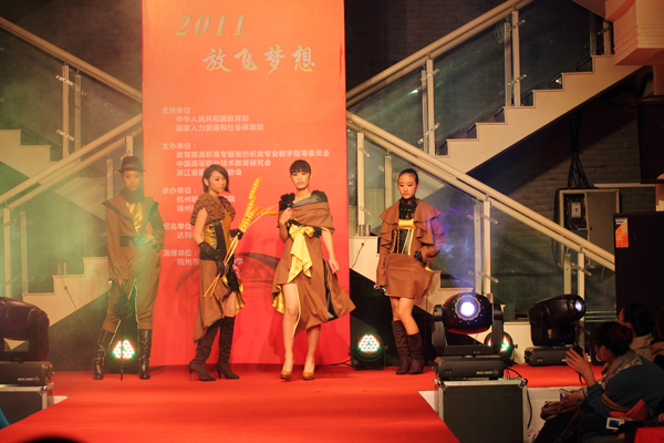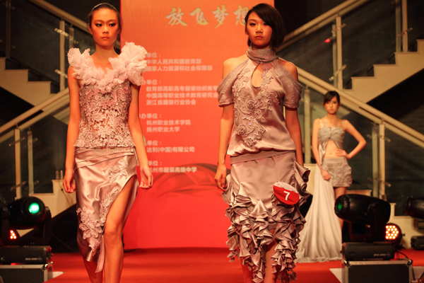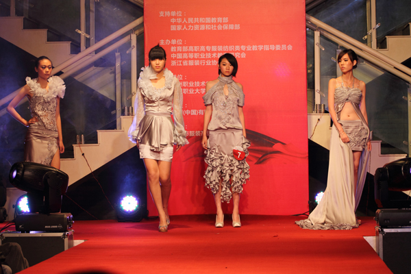 据了解,本次大赛以女装系列服装设计为主,突出“放飞·梦想”主题,分为教师组和学生组。共有来自江苏、安徽、河北、江西、湖北、广西、北京、福建、新疆等19个省市自治区的52所高职高专院校参赛。在收到的400多件参赛作品中,经过专家初评,学生组20件作品入围决赛,教师组15件作品入围决赛。最后分别在教师组和学生组评选出金、银、铜奖和优秀奖及最佳版型奖、最佳工艺奖、最佳时尚面料奖等5个单项奖。同时,人力资源和社会保障部向获奖者颁发“服装设计定制工”技师证书或“服装设计定制工”高级技工证书。