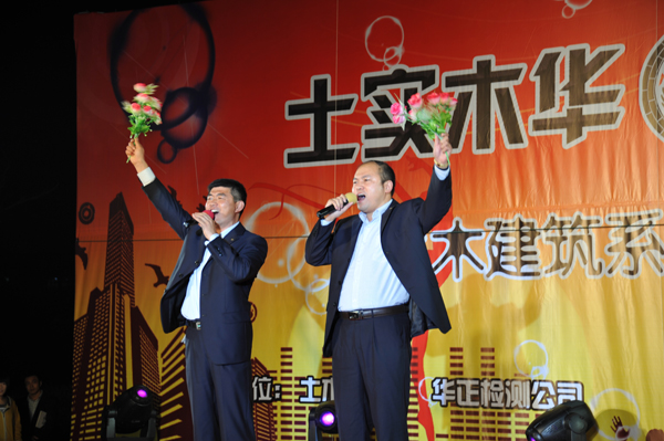 江苏扬建集团作为该系校企合作的共建单位,以强大的阵容积极参与了本次迎新晚会的演出。扬建集团副总经理邹厚存自始至终亲临现场,并携手校科技产业处处长王思源倾情演唱了一曲《敢问路在何方》,寓意校企合作这条路必定越走越长、越走越广。晚会上学生节目别出新意,小品《我等你》将土木建筑系的专业术语融入其中,《模型展示秀》向现场的观众展示了学生自己设计的作品,精美绝伦的室内装潢,外观大气的教学楼,豪华舒适的小别墅,还有模型大赛的获奖作品——中国馆。
